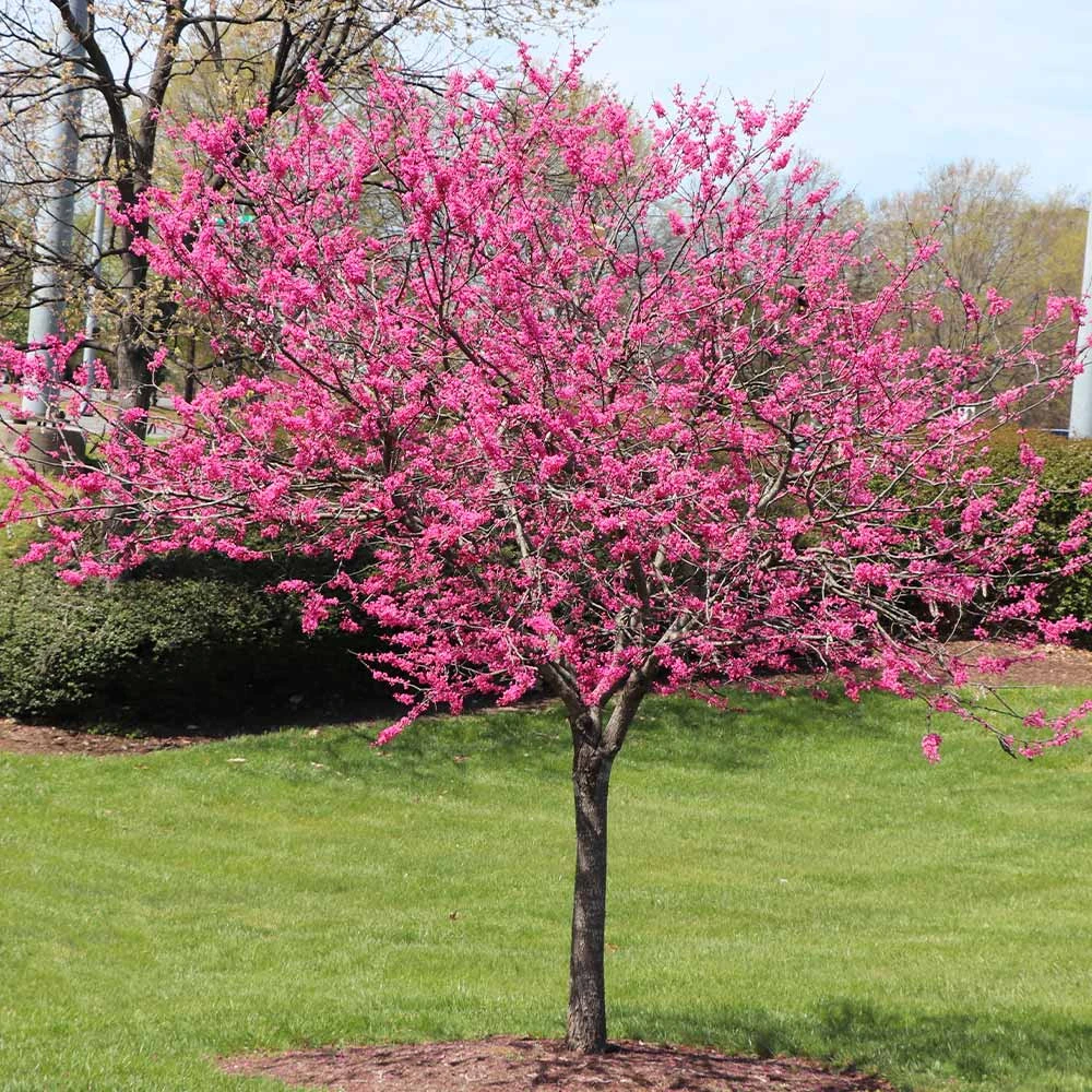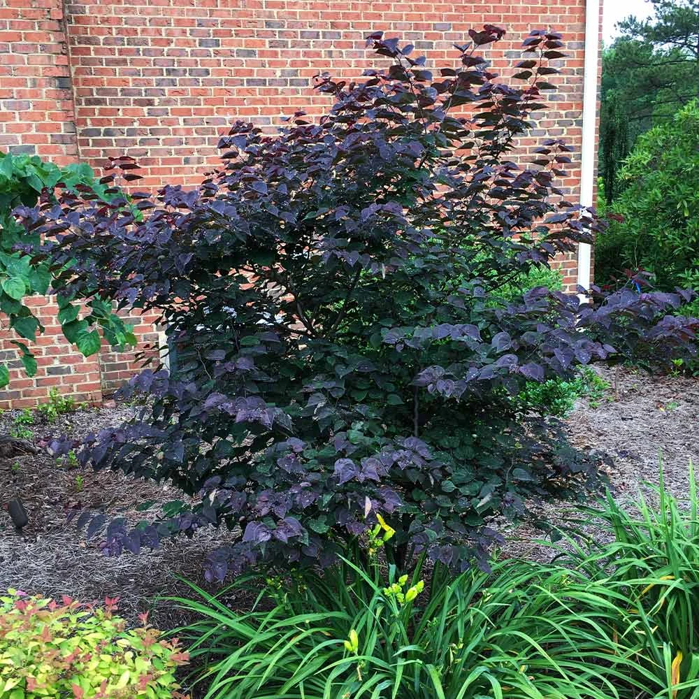In the early spring, this tree explodes with bright pink clusters of flowers that cover the compact branches. Its vivid, abundant blooms are contrasted by the rich burgundy foliage that adorns the tree when it’s not blooming. The heart-shaped foliage keeps its deep purple color even into the hottest days of summer, giving you a pop of color no matter the season.